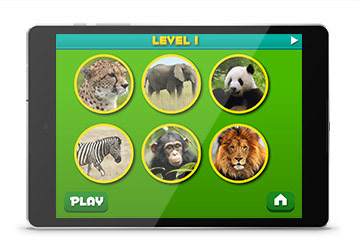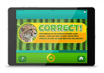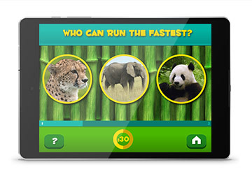 App concept and design created for a trivia game revolving around wild animals. The UI design aimed to be simple, colorful, and educational with the target use of young children in mind.