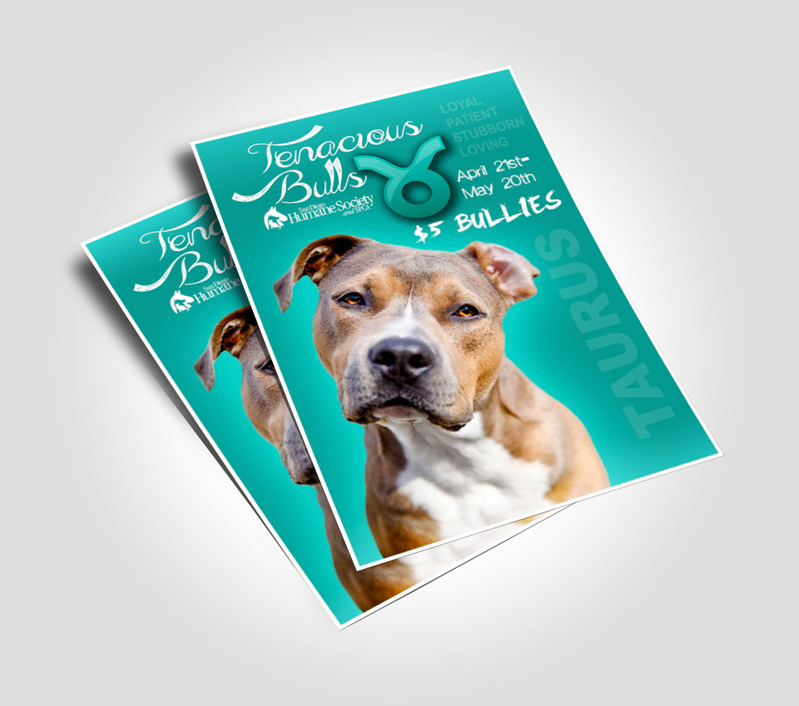 Promotional concepts created and designed as flyer postcards as well as various print and web ads to spread awareness of shelter pet adoption events.